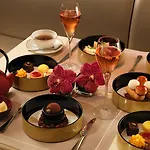 De bar serveert voorgerechten en taarten in een een intieme sfeer. Restaurant Le Lumiere is gesitueerd in de onmiddellijke nabijheid van Mandarin Oriental, Parijs.